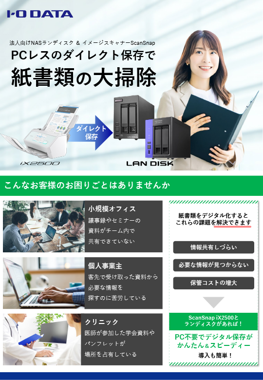 キーワード・型番から検索 型番 キーワード おすすめキーワードから探す 導入事例 液晶ディスプレイ Windows NAS ランサムウェア HDD/SSD 電気代 Wi-Fi Web会議 医療 サイネージ 抗菌 アイオーステーション 取扱商品 条件を追加する ソリューション ITインフラ強化 オフィス全般 コミュニケーション テレワーク 教育支援 文書管理 業務効率アップ 生産性向上 業種 官公庁・自治体 教育 商品 IoT/LTEルーター NAS アーカイブ キャプチャー サイネージ サービス 液晶ディスプレイ 絞り込み条件 ソリューション 業種 商品 「342」件の検索結果 並び替え 新着順 DLが多い順 上位5点を一括ダウンロードする 更新日:2026年01月22日 NEW 【映像放送業界向け】ポータブルSSDラインアップ チラシ サイズ:A4 / 2ページ ダウンロード 更新日:2026年01月21日 NEW 【導入事例】34型超ワイド液晶ディスプレイ「LCD-CWQ341SDB-F」 チラシ サイズ:A4 / 1ページ ダウンロード 更新日:2026年01月19日 NEW ビジネスもエンターテイメントもこの1台で。16型モバイルディスプレイ「LCD-YC163DX」 チラシ サイズ:A4 / 2ページ ダウンロード 更新日:2026年01月19日 NEW ランディスクとScanSnapで紙書類のカンタン大掃除! チラシ サイズ:A4 / 2ページ ダウンロード 更新日:2026年01月16日 NEW 大画面でも、周囲の視線を気にしない。オフィス内のプライバシー保護に 液晶プライバシーフィルター チラシ サイズ:A4 / 1ページ ダウンロード 更新日:2025年12月26日 クラウド×オンプレで企業のデータ管理をもっと安心・簡単に チラシ サイズ:A4 / 2ページ ダウンロード 更新日:2025年12月24日 4K対応、高精細でなめらかな映像美!ドッキングステーション機能を搭載した「BizCrysta」LCD-CU321D-F チラシ サイズ:A4 / 2ページ ダウンロード 更新日:2025年12月24日 LAN DISKをウイルスから守る「IO NAS Security」 チラシ サイズ:A4 / 2ページ ダウンロード 更新日:2025年12月18日 LAN DISK×Wasabiで実現する安心・手軽なデータのハイブリッド運用 チラシ サイズ:A4 / 2ページ ダウンロード 更新日:2025年12月15日 高信頼Ultrastar採用外付けハードディスク_HDJA-UTUシリーズ チラシ サイズ:A4 / 2ページ ダウンロード 更新日:2025年12月15日 2画面分の効率を、この1台で。LCD-CWQ341SDB-F チラシ サイズ:A4 / 2ページ ダウンロード 更新日:2025年12月15日 ハードウェアRAIDで差が付く!サーバーバックアップ用HDD「HD4-UTNシリーズ」 チラシ サイズ:A4 / 2ページ ダウンロード 342件中 1 ~ 12 件目を表示しています 1 2 3 4 5 29 更新日:2024年11月25日 NEW 【Windows 11へのアップデート前に!】メモリー増設でマルチタスクを快適に! チラシ サイズ:A4 / 2ページ I-ODATA_【Windows11へのアップデート前に!】メモリー増設でマルチタスクを快適に!.pdf 販売店記入あり ダウンロード この画面を共有する